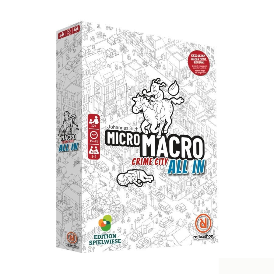 MicroMacroval: A Crime City - All In, a bűnözés sújtotta fekete-fehér metropolisz következő kerülete nyílik meg a játékosok előtt. A korábbi terveket zökkenőmentesen követő új, hatalmas várostérképen ismét 16 trükkös bűnügy várja, hogy 1-4 amatőr nyomozó megoldja őket. Ezek vadonatúj történetek, minden eddiginél kifinomultabbak és bűnözőbbek!