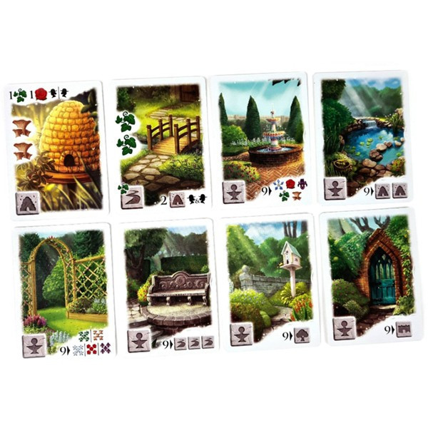 A játék grafikája gyönyörű (April Borchelt, Naomi Robinson, Christina Qi és Dann May alkotásai), és az ikonográfia nagyon könnyen megtanulható és megjegyezhető. Az alkatrészek minősége kivételes, de talán kissé túlzásba is eshet egy alapvetően nagyon okos, korlátozott információval rendelkező draftkártyajátékhoz képest. Ezzel eljutottam egy másik, kissé negatív ponthoz, ami a tartalom. Nagyon ritkán mondom ezt, de ebben a játékban túl sok minden van. A játék 1-7 játékosnak szól, de a valóságban a játék valójában 3-7 játékosnak szól. A játékot kooperatívan is lehet játszani, de én ezt fele annyira sem találtam szórakoztatónak, mint a kompetitív módot. Van egy Garden Show változat (3 játszmán keresztül játszható, különleges játék végi eredményekkel) és egy Compost változat (a pakli átásásának módja). Végül két bővítményt is tartalmaz, a Friends és a Follies. A Friends bővítmény egy titkos pontgyűjtő kártyát biztosít, amely segít a kert bizonyos területeire összpontosítani, míg a Follies bővítmény úgy tűnik, hogy nem csinál sokkal többet, minthogy rengeteg kartondarabot és néhány pontgyűjtési lehetőséget biztosít. A játékot játszhatod csak a kártyapaklival is, ami alacsonyan tartaná a költségeket, azonban a játék mindenki számára kínál valamit.