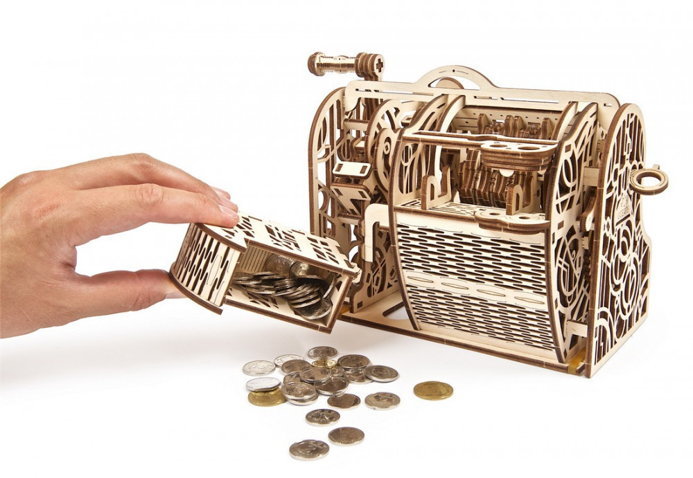 Ezt az eredeti és okos mechanikus bankot úgy tervezték, mint egy vintage pénztárgépet, hogy pénzügyeidet biztonságban tudd. A modell a valódi prototípusához hasonlóan érme- és bankjegydobozokkal rendelkezik. Az extra védelem érdekében ezek kódzárral vannak biztosítva. A kódot a kódmechanizmus segítségével tetszés szerint frissítheted.