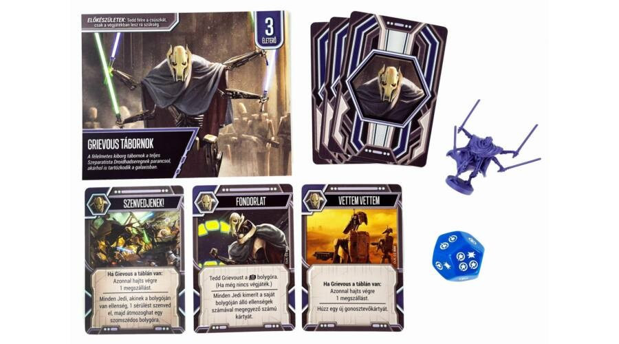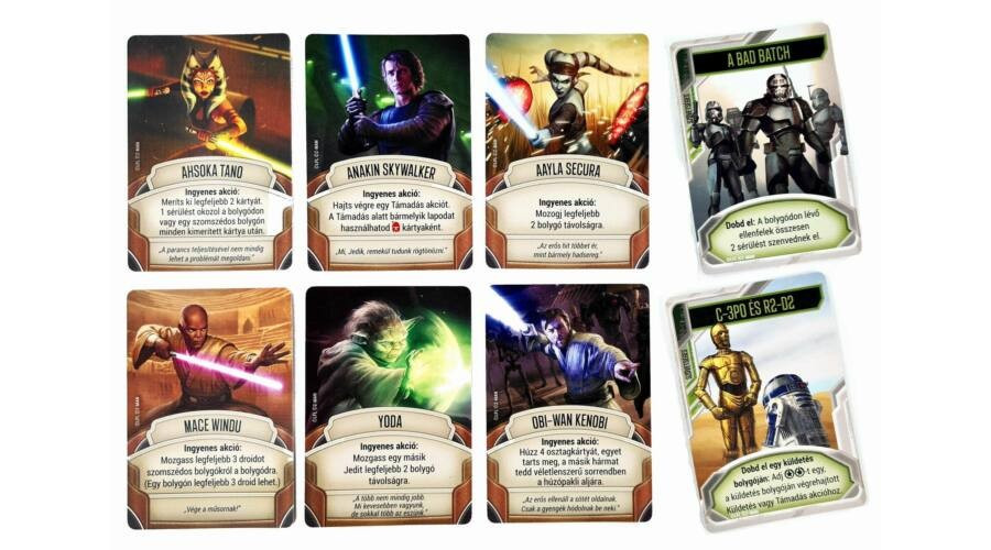 Ahogy a droidok közelednek és blokádok veszik át az uralmat, dobj kockával, és kombináld az eredményeket osztagkártyákkal és különleges jedi képességekkel, hogy teljesítsd az alapvető küldetéseket és visszaverd az ellenség támadását. A küldetések az egyes bolygókon zajlanak, és a teljesítéshez kockadobás és csapatmunka kombinációjára van szükség. Végül szemtől szemben találod magad egy ikonikus gonosztevővel, aki csak az adott forgatókönyvhöz tartozik. Szembe kell nézned Darth Maullal, Grievous tábornokkal, Asajj Ventresszel és Dooku gróffal. Ha le tudod győzni az ellenfeledet, akkor a háború a tiéd.